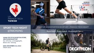 Sport Tech Night by 1987 1987 people viewed this event. ***REGISTRATION IS NOW CLOSED*** In the continuation of a long term cooperation on Innovation, Decathlon and La French Tech Taiwan, with the support of French Office in Taipei, are organizing the first French Tech Night in Taichung! This event will focus on #SportTech in the heart … Continue reading Sport Tech Night